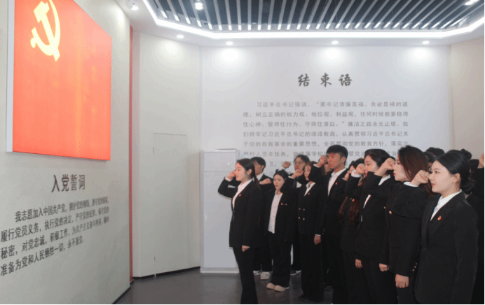活动中,党员们依次参观了教育馆的“倡廉、寻廉、警廉、践廉、润廉、铭廉、誓廉”七个篇章,通过图文史料、案例展示,并融合书画创作与多媒体交互展示等形式,深入了解了廉洁文化的历史脉络与时代内涵,直观感受到清正廉洁的精神传承与现实意义。参观结束后,全体党员重温入党誓词,共同强化身份意识与责任担当。